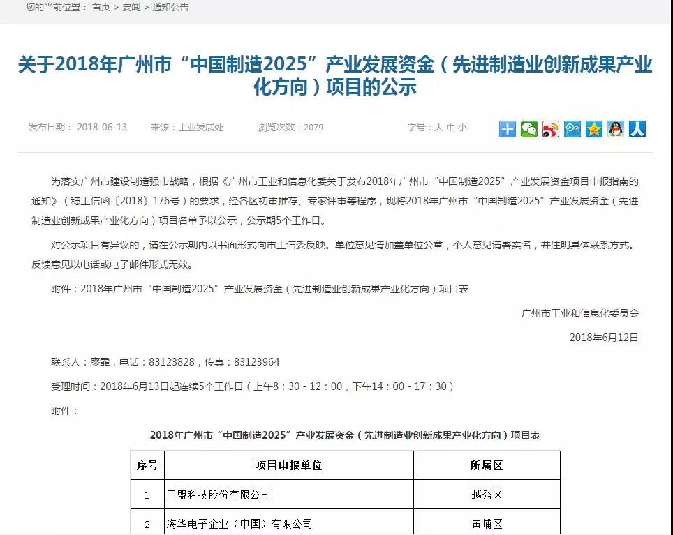 三盟科技“教室智能控制及數據采集平臺”入選2018年廣州市“中國制造2025”產業發展資金項目
