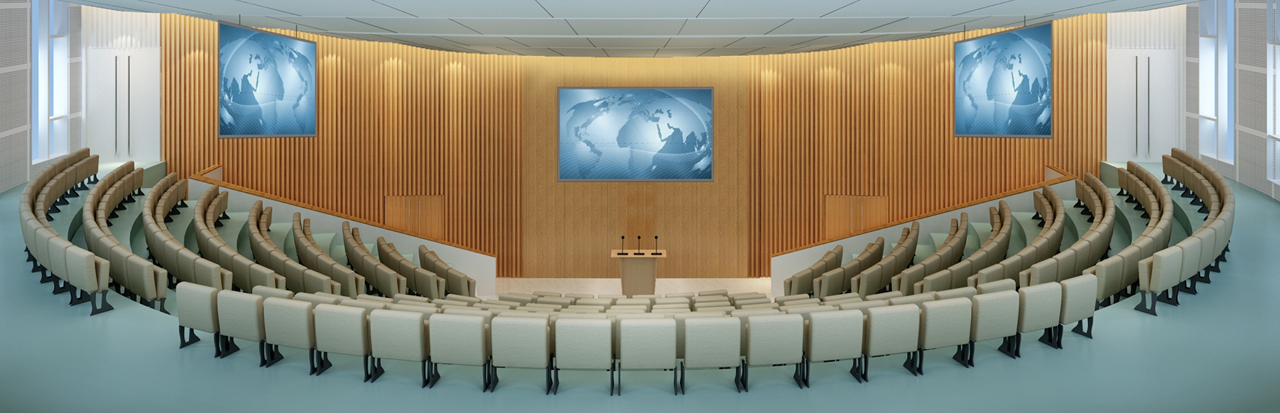 1塊250寸幕布加上2塊150寸幕布結合3臺激光投影作為前排的主顯和輔顯;