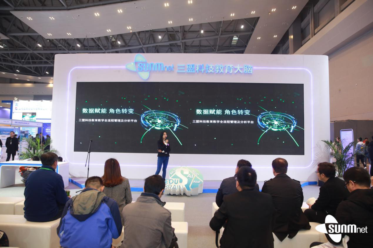 本次三盟科技展區(qū)以“教育大腦智慧校園整體解決方案(EDU BRAIN)”為核心,人工智能AI、大數(shù)據(jù)AIoD、物聯(lián)網(wǎng)AIoT、人臉識別AIoF四大核心技術(shù)產(chǎn)品亮相!