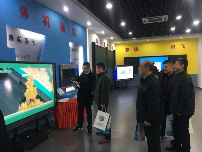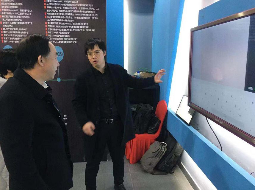 泰安市市長張濤,副市長趙德健在泰山區委副書記、區政府區長王愛新的陪同下參觀考察了三盟科技展區,三盟科技助理CEO孫國文對普教產品做了詳細匯報,泰安市領導對三盟科技進入山東省市場表示熱烈歡迎和高度期待。