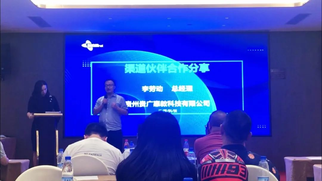 會上,貴州貴廣惠教科技有限公司李勞動總經理作為三盟科技戰略合作伙伴發言,從“感恩、感謝、合力”三個關鍵詞分享共贏的經驗。李總表示在剛擔任總經理一職的時候是戰戰兢兢、如履薄冰的,不確定是否能夠有機會服務好貴州省從學前到普教到職校再到高校的兩萬三千多所學校、九百五十萬名學生。感恩三盟科技跟貴廣惠教達成戰略合作,提供非常好的產品,讓公司發展得到了這么一個好的未來。同時,感謝這次貴州站的渠道會,在貴州目前信息化正在快速發展的今天,讓各位合作伙伴相聚一堂。