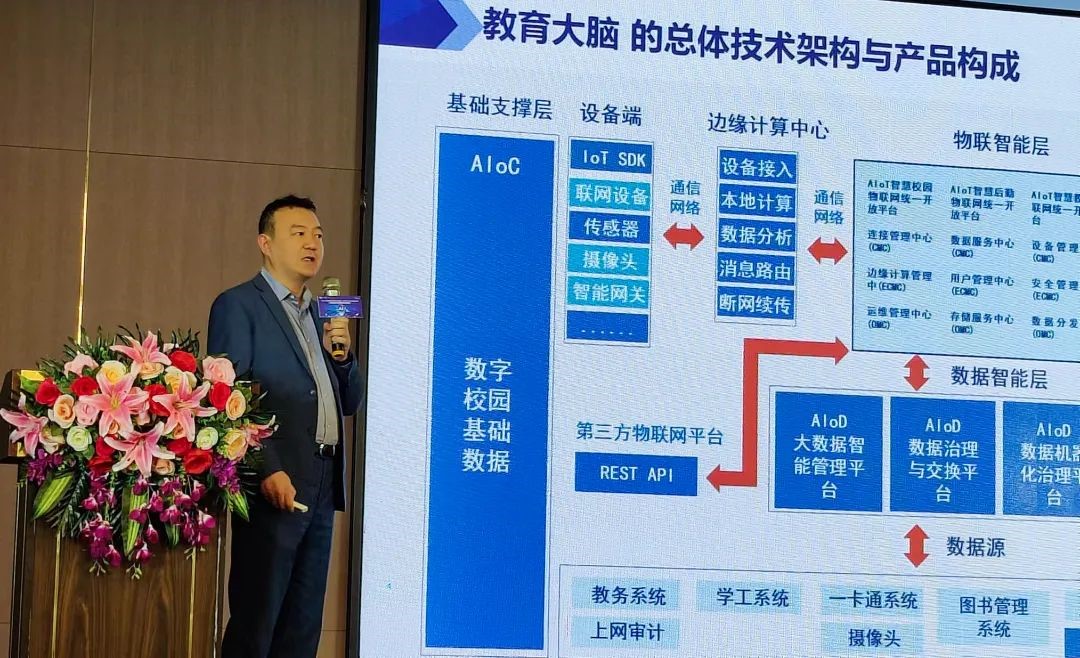 隨后,三盟科技副總裁孫國文帶來《高教教育大腦助力教育數字化轉型》的主題報告。他表示,教育信息化2.0時代,對教育數字化的發展提出了更高要求,注重信息技術與教育教學的深度融合,引領教育深層次變革。三盟科技教育大腦打造教育數字基座,利用AI+大數據技術,為各應用場景提供輔助決策,讓管理更加科學,讓服務更加個性,讓教學更加高質量,真正實現高校數字化戰略轉型。