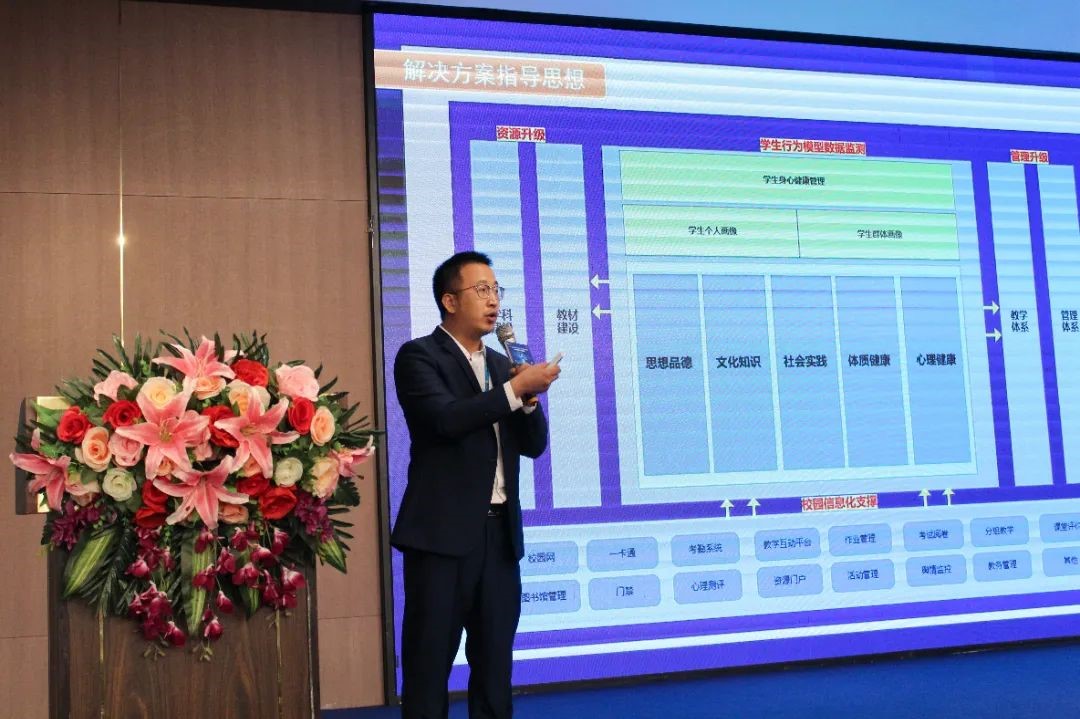 在智慧教學建設方面,三盟科技智慧教學產品總監張強分享了“五位一體智慧教學解決方案4.0“,通過智慧教學環境、智慧教學軟件、督導評價、互動教學平臺與資源統一門戶、教學大數據分析與輔助決策平臺的建設,為學校智慧教學提供強有力的支撐。