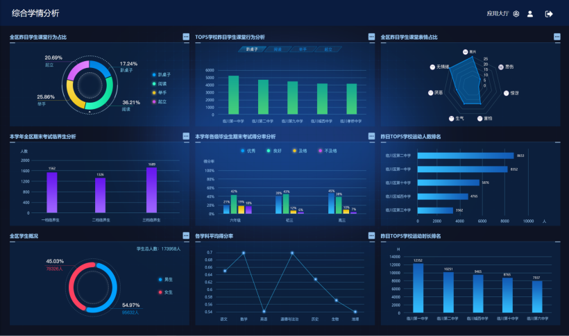 在學校打好“減負提效”攻堅戰的過程中,大數據還擔當起重要的監督角色。基于教育基礎數據服務體系,整合各類應用系統并采集相關過程性和基礎性數據,可將“雙減”工作納入教育評價體系,對評價涉及的課堂教學情況,作業完成情況、以及課后服務的時間、類別、效能、經費支出等各項指標進行過程跟蹤,對學校“減負”工作進行綜合評價,確保課堂應教盡教、學生作業真正減負、課后服務切實有效。