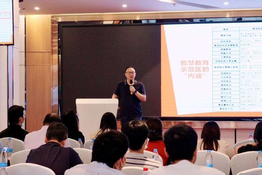 三盟科技華南區(qū)技術(shù)總監(jiān)張海鵬現(xiàn)場分享了三盟科技高教“教育大腦”。他以教育信息化政策為切入點(diǎn),從智慧管理、智慧環(huán)境、智慧服務(wù)、智慧資源等方面為高校智慧校園建設(shè)提供可行性思路。