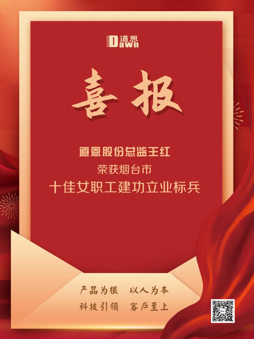 “被評為‘煙臺市十佳女職工建功立業(yè)標(biāo)兵’榮譽(yù)稱號,我倍受鼓舞、倍感光榮、倍增動力。”在3月6日召開的煙臺市總工會第五屆女職工委員會第四次全體會議暨先進(jìn)女職工事跡報告會上,道恩股份研發(fā)總監(jiān)王紅作為獲獎?wù)叽磉M(jìn)行交流發(fā)言。這是繼2019年榮獲“煙臺市女職工建功立業(yè)標(biāo)兵”之后,王紅再獲新的殊榮。