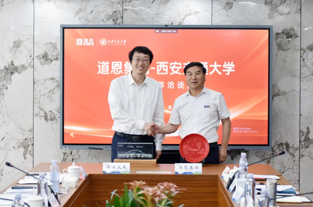 “我們贈(zèng)送的禮物是道恩橋模型,意味著雙方從今天開始架起了合作的橋梁!”在互贈(zèng)禮物環(huán)節(jié),于曉寧董事長(zhǎng)表示,這是一座互信、合作、共贏的橋梁,希望今后雙方緊密相連,雙向賦能,相互成就。西安交通大學(xué)贈(zèng)給道恩的是一方紅木圓盤擺件,預(yù)示著校企之間合作圓滿,未來(lái)可期。
