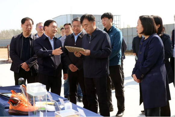 在視察現(xiàn)場,道恩集團董事長、總裁于曉寧匯報了該項目有關(guān)情況,以及產(chǎn)業(yè)鏈、產(chǎn)品鏈和企業(yè)鏈打造情況。視察組在聽取了產(chǎn)品性能、應(yīng)用領(lǐng)域、行業(yè)地位和未來發(fā)展等有關(guān)情況匯報后,對道恩高質(zhì)量發(fā)展取得的成果給予了充分肯定。