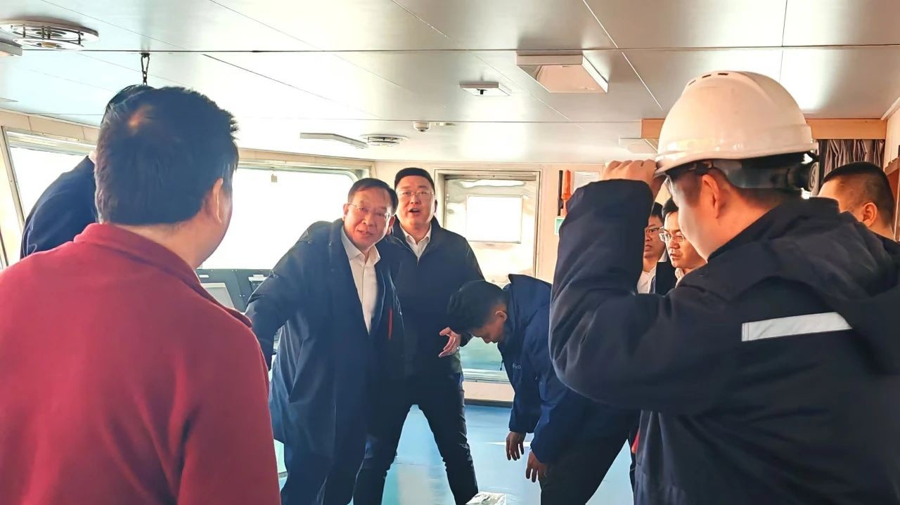 當天上午,華電曹妃甸儲運有限公司黨委書記、董事長魏明玖一行,帶著滿滿的關(guān)懷,登船慰問在崗職工。一踏上甲板,魏明玖便與船員們親切握手,關(guān)切地詢問大家的工作和生活情況,句句暖心,字字真情。