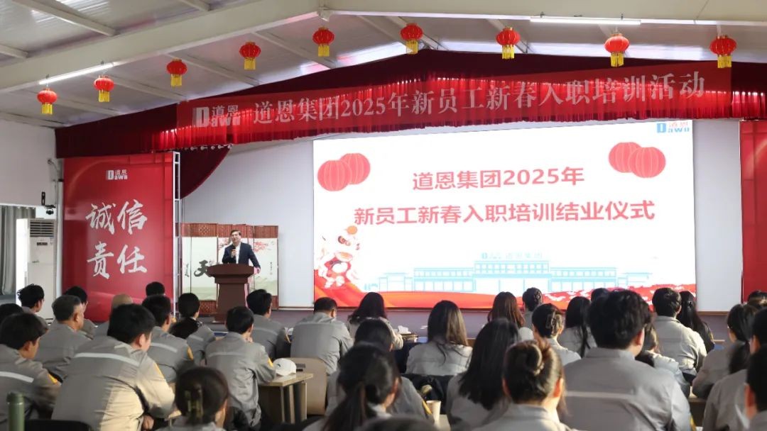 2月14日,為期5天的道恩集團(tuán)2025年新員工新春入職培訓(xùn)活動在道恩商學(xué)院圓滿落幕。道恩集團(tuán)董事長、總裁,道恩商學(xué)院院長于曉寧出席結(jié)業(yè)儀式并講話。據(jù)介紹,今年的新春招聘工作自1月中旬啟動,經(jīng)過層層選拔,百余人脫穎而出,順利入職。