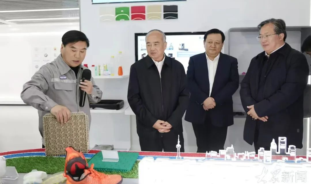在省委常委、煙臺市委書記江成,省委常委、秘書長范波,省委常委、組織部部長周立偉,龍口市委書記李萬平等有關(guān)領(lǐng)導(dǎo)陪同下,林武書記走進道恩新材料展示中心,聽取道恩集團董事長、總裁于曉寧,關(guān)于產(chǎn)業(yè)鏈、產(chǎn)品鏈和企業(yè)鏈打造情況的匯報。當?shù)弥髽I(yè)正在持續(xù)鍛精拉長高分子新材料產(chǎn)業(yè)鏈、鈦產(chǎn)業(yè)鏈、化工裝備產(chǎn)業(yè)鏈,對道恩以鏈式思維打造特色產(chǎn)業(yè)集群的做法給予充分肯定。