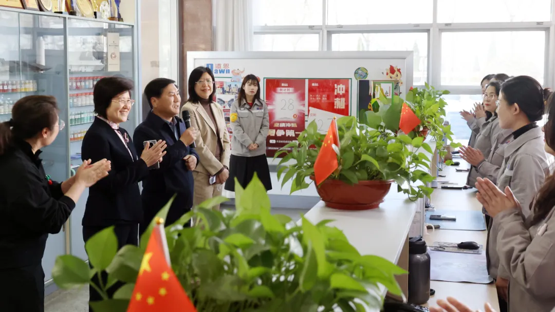 在道恩集團(tuán)總部大廳,李少娜主席聽取了有關(guān)企業(yè)發(fā)展、產(chǎn)業(yè)布局、行業(yè)地位、科技創(chuàng)新及社會責(zé)任等情況介紹,對企業(yè)高質(zhì)量發(fā)展成果表示贊賞,特別肯定了女職工在科技創(chuàng)新、管理提升等關(guān)鍵崗位發(fā)揮的“半邊天”作用。