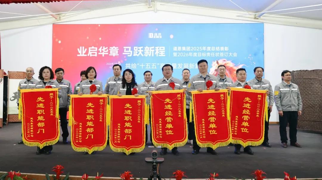 2月6日,道恩集團(tuán)在道恩商學(xué)院召開主題為“業(yè)啟華章 馬躍新程”的2025年度總結(jié)表彰暨2026年度目標(biāo)責(zé)任狀簽訂大會,旨在總結(jié)得失,研判形勢,表彰先進(jìn),激勵全體干部員工接續(xù)奮斗,推動企業(yè)健康發(fā)展、高質(zhì)量發(fā)展。會議在山東龍口設(shè)主會場,在海內(nèi)外設(shè)11個視頻分會場,道恩集團(tuán)董事長、總裁于曉寧出席會議并講話。