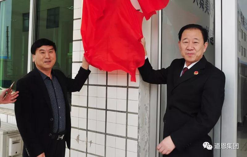 龍口市人民檢察院副檢察長孫吉連(右)與集團(tuán)公司董事長于曉寧為基地揭牌