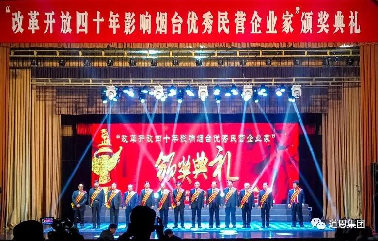 12月28日,煙臺(tái)市民營企業(yè)協(xié)會(huì)、煙臺(tái)日?qǐng)?bào)傳媒集團(tuán)聯(lián)合舉行“改革開放四十年影響煙臺(tái)優(yōu)秀民營企業(yè)家“評(píng)選活動(dòng)頒獎(jiǎng)典禮,會(huì)上,共20名功勛民營企業(yè)家、50名優(yōu)秀民營企業(yè)家受到表彰,道恩集團(tuán)董事長于曉寧榮獲“改革開放四十年影響煙臺(tái)功勛民營企業(yè)家”榮譽(yù)稱號(hào),道恩集團(tuán)副總裁劉勇波應(yīng)邀出席活動(dòng)。