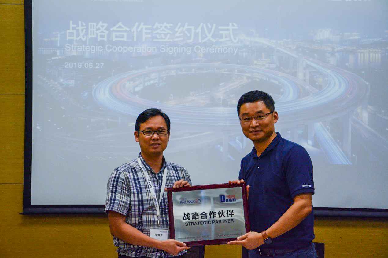 6月27日,山東道恩高分子材料股份有限公司(簡(jiǎn)稱道恩股份)與阿朗新科高性能彈性體(常州)有限公司(簡(jiǎn)稱阿朗新科)在阿朗新科EPDM常州工廠舉行戰(zhàn)略合作簽約儀式, 雙方在Keltan?EPDM的使用上建立戰(zhàn)略伙伴關(guān)系,并努力拓展其他領(lǐng)域的合作。道恩集團(tuán)副總裁邱煥玲、道恩股份副總經(jīng)理田洪池、阿朗新科大中華區(qū)銷售總監(jiān)路伯揚(yáng)、阿朗新科亞太區(qū)技術(shù)總監(jiān)程寶家出席儀式。