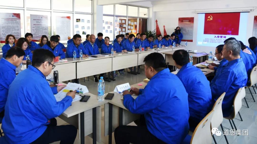 10月19日下午,道恩集團(tuán)黨總支在道恩馨園黨員活動(dòng)室組織召開“不忘初心,牢記使命”主題黨日活動(dòng),道恩集團(tuán)董事長、龍口市龍港街道興隆莊村黨委書記于曉寧出席活動(dòng),黨總支書記王永放主持活動(dòng),各支部黨員及入黨積極分子50余人參加活動(dòng)。