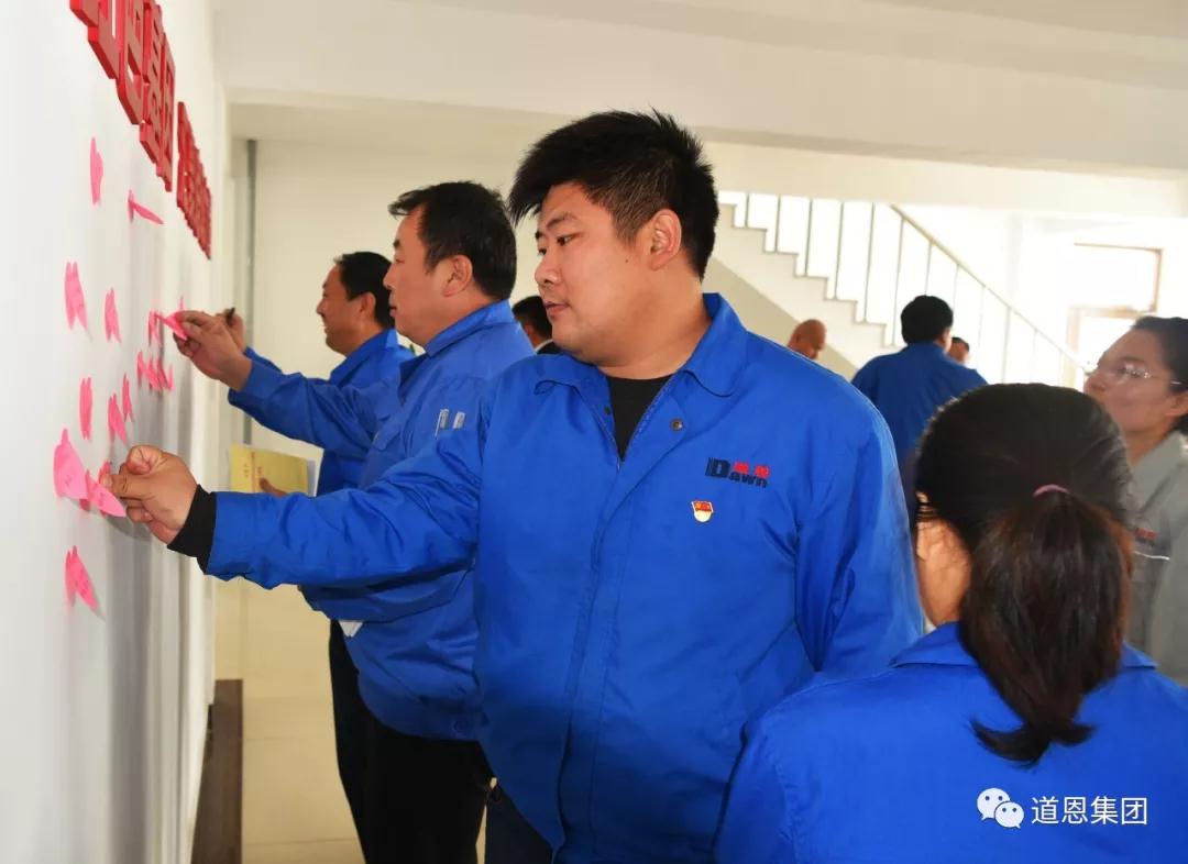 全體黨員集體學(xué)習(xí)了《習(xí)近平新時(shí)代中國特色社會(huì)主義思想學(xué)習(xí)綱要--新時(shí)代是中國特色社會(huì)主義新時(shí)代》,共同觀看了微視頻《2018年感動(dòng)中國十大人物之杜富國》、《國士無雙——林俊德》,集體宣誓爭做“無我先鋒”,簽訂《道恩集團(tuán)黨總支‘不忘初心,牢記使命’承諾書》,并在黨員活動(dòng)室留下寄語。新一屆黨總支書記、支部書記、預(yù)備黨員代表、入黨積極分子代表作了發(fā)言。