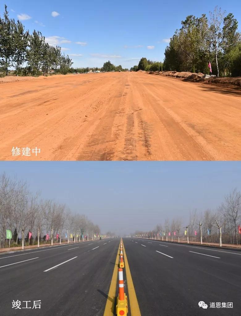 走進(jìn)產(chǎn)業(yè)園區(qū),一條南北走向的嶄新柏油路映入眼簾,路面平整、標(biāo)識清晰、景觀優(yōu)美。整體路寬32米,為雙向6車道,設(shè)立了人行道、盲道,完成了排水系統(tǒng)及兩側(cè)綠化工程。據(jù)道恩集團(tuán)規(guī)劃建設(shè)管理部副部長胡本敬介紹,此次道路修建工程總投資2000多萬,歷時(shí)2個(gè)多月,對和平北路南段塌陷區(qū)硬化修整870米,對新港路東段進(jìn)行土路硬化674米。