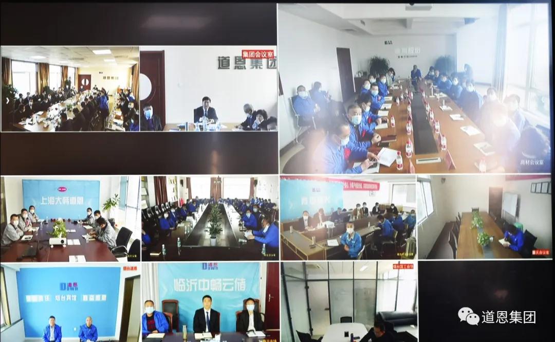 會議在道恩集團(tuán)總部設(shè)主會場,在上海、青島、煙臺、臨沂、重慶等地設(shè)8個(gè)分會場,道恩集團(tuán)董事長于曉寧、總裁索延輝出席會議并講話,道恩集團(tuán)領(lǐng)導(dǎo)班子成員及各職能部門、經(jīng)營單位副部級以上干部參加視頻會議。