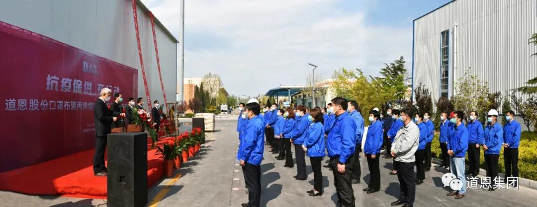 4月26日,道恩股份舉行口罩布聚丙烯熔噴料擴產(chǎn)項目投產(chǎn)儀式。該項目達產(chǎn)后,道恩股份(母公司)聚丙烯熔噴專用料日產(chǎn)量達到1200噸,可滿足12億只口罩的生產(chǎn)需要,最大限度助力國內(nèi)疫情防控和復(fù)工復(fù)產(chǎn),積極支援全球戰(zhàn)“疫”。