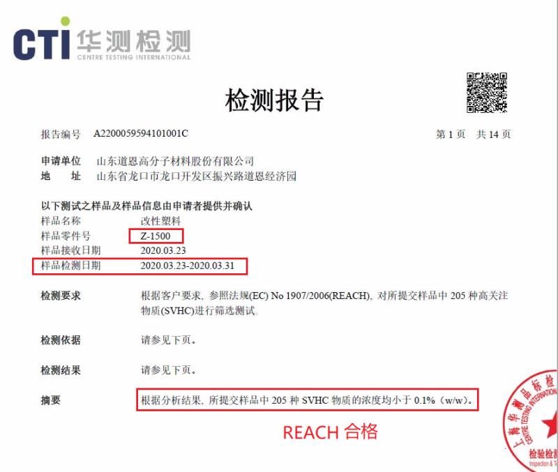 “經(jīng)過有害物質(zhì)注冊(cè)、評(píng)估、檢驗(yàn)后,在測(cè)試清單中205項(xiàng)有害物質(zhì)含量中均符合REACH的標(biāo)準(zhǔn)。這一突破性成果表明,道恩的產(chǎn)品在化學(xué)物質(zhì)指標(biāo)上達(dá)到了歐盟市場(chǎng)的要求。”田洪池總經(jīng)理說,此舉將有助于拓展國(guó)際市場(chǎng),提升道恩品牌國(guó)際化水平。