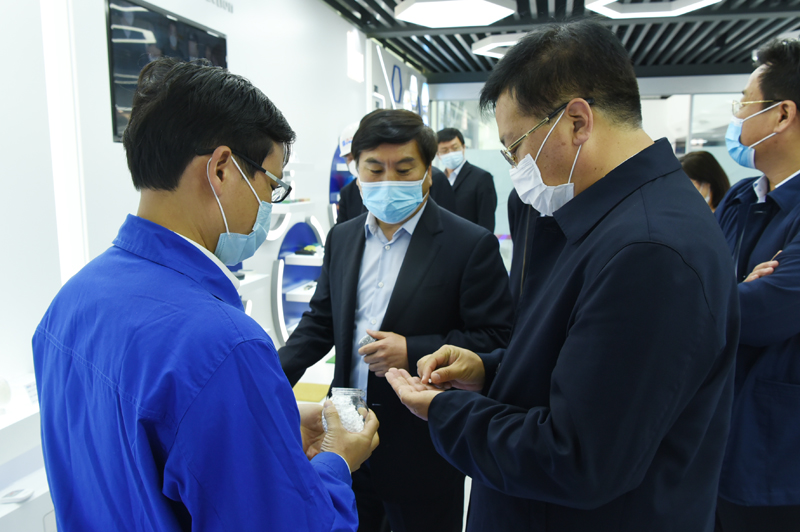 周鳳文副廳長一行先后參觀了道恩股份產(chǎn)品展廳、國家認(rèn)定企業(yè)技術(shù)中心,于曉寧董事長簡要匯報了企業(yè)發(fā)展歷程、核心產(chǎn)品相關(guān)情況,以及疫情期間所作的工作。周鳳文副廳長對道恩的企業(yè)實力、科研能力、核心競爭力,以及在此次抗擊疫情中突出的專業(yè)保供能力,給予高度評價。