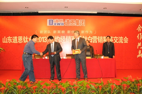 3月19日,被國家化工行業(yè)生產(chǎn)力促進(jìn)中心譽(yù)為國內(nèi)同行業(yè)樣板工程的道恩鈦業(yè)公司迎來了來自全國各地的54個鈦白粉經(jīng)銷商,參加山東道恩鈦業(yè)(2013)簽約經(jīng)銷商暨鈦白營銷精英交流會,鈦白專家、清華大學(xué)教授崔愛莉,中國化工報(bào)首席記者姜小毛也應(yīng)邀出席了會議。