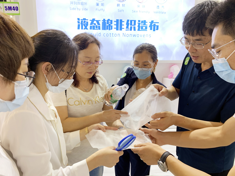 生活展助企業(yè)與新技術共舞,塑品牌、練內(nèi)功、搶商機。上屆展會,斯維特首次參展,深入調(diào)研市場,掌握行業(yè)動態(tài),獲眾多客戶垂詢。此次展會上,道恩斯維特液態(tài)棉系列產(chǎn)品以蓬松、柔軟、親膚、透氣、零刺激等獨特優(yōu)點贏得了國際知名客戶的青睞。展會首日,美國金佰利、美國P&G、歐洲ONTEX、日本花王、日本大王等國際品牌,BABYCARE、恒安、昱升、露樂、豪悅、漢氏、美佳爽、蘭斯貝兒、貝舒樂、淑潔、貝禧、豐度、歐比等國內(nèi)知名企業(yè)前來洽談。上游客戶中石化、??松葟S家訪問道恩斯維特展位,就雙組份相關原材料要求進行深入交流?!罢箷Y(jié)束后,我們將專程拜訪道恩集團及斯維特,進一步洽談合作事宜?!眳⒄箍蛻舯硎?。
