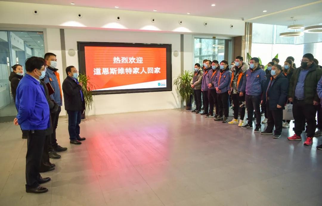 1月9日一大早,道恩集團各部門、單位像往常一樣忙活起來,與以往不同的是空氣中平添了喜悅的氣氛。“各單位準備完畢,就等著家人們到來了。”剛過8點,董事辦公室主任張曉艷在參觀專用微信群里發(fā)完這句話,就早早跑到門口等候。