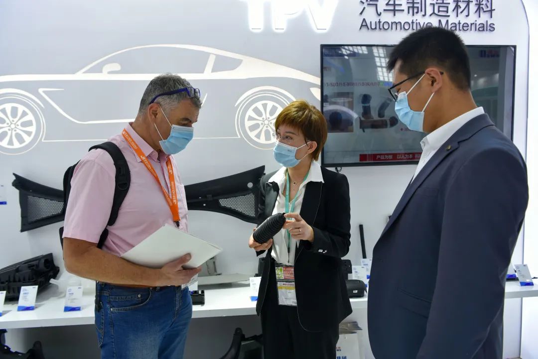 道恩展位上,電子屏滾動播放著反映企業(yè)發(fā)展歷程、戰(zhàn)略目標、科技研發(fā)、產(chǎn)品性能以及硬核抗疫等情況的視頻。參展人員熱情接待,詳細解答來訪客戶問題,充分介紹了道恩產(chǎn)品的優(yōu)越性能。國內(nèi)外知名展商慕名前往道恩展臺溝通洽談,其中不乏中煤集團、威高集團、海南逸盛、利安德巴塞爾、曼胡默爾、中國一汽、TCL、正泰電子、李寧等知名客戶。