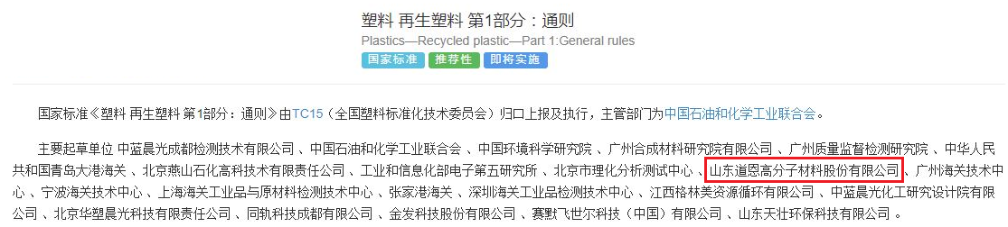 道恩參與又一國家標(biāo)準(zhǔn)發(fā)布! 涉及塑料再生碳中和領(lǐng)域