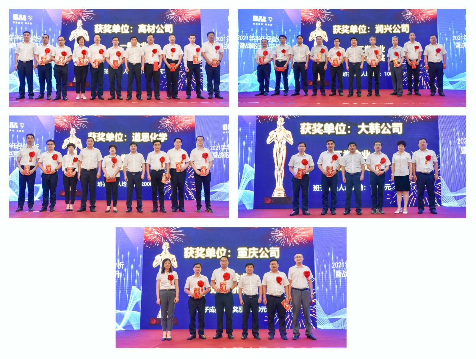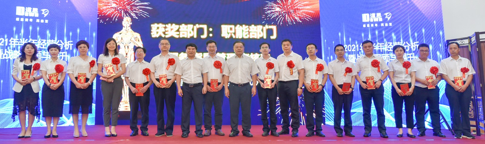 24日上午的經(jīng)營(yíng)分析會(huì)上,對(duì)上半年超額完成經(jīng)營(yíng)目標(biāo),以及取得季度效益創(chuàng)優(yōu)和季度雙增長(zhǎng)獎(jiǎng)的經(jīng)營(yíng)單位進(jìn)行表彰獎(jiǎng)勵(lì),并對(duì)多個(gè)業(yè)績(jī)超過(guò)歷史最好值的經(jīng)營(yíng)單位頒發(fā)了超額分享的獎(jiǎng)勵(lì)。道恩集團(tuán)領(lǐng)導(dǎo)班子成員分別為獲獎(jiǎng)單位頒獎(jiǎng),獲獎(jiǎng)單位依次上臺(tái),表達(dá)了對(duì)圓滿完成年度經(jīng)營(yíng)任務(wù)、“十四五”開(kāi)局必勝的決心和信心,進(jìn)一步濃厚了道恩人干事創(chuàng)業(yè)的豪邁與激情。