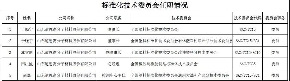 一流企業(yè)做標(biāo)準(zhǔn),二流企業(yè)做品牌,三流企業(yè)做產(chǎn)品。作為國家認(rèn)定的高新技術(shù)企業(yè),道恩股份專業(yè)從事高分子新材料的研發(fā)及應(yīng)用,產(chǎn)品涉及熱塑性彈性體、改性塑料、色母料、熔噴料及生物可降解材料等,多款產(chǎn)品躋身世界競爭舞臺。多年來,道恩股份積極參與各類標(biāo)準(zhǔn)的制修訂,培養(yǎng)了一批標(biāo)準(zhǔn)化專家,4名道恩人在全國性標(biāo)準(zhǔn)化技術(shù)委員會擔(dān)任5個委員,彰顯了道恩在標(biāo)準(zhǔn)化領(lǐng)域的行業(yè)地位和作用。