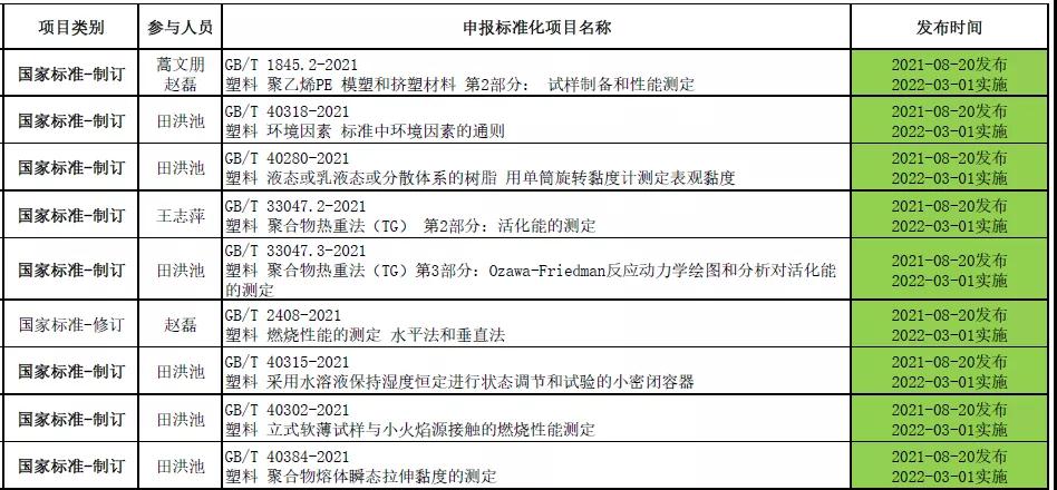 近日,國家市場監(jiān)督管理總局、國家標(biāo)準(zhǔn)化管理委員會發(fā)布2021年第11號中國國家標(biāo)準(zhǔn)公告,道恩股份參與制修訂的9項國家標(biāo)準(zhǔn)獲批發(fā)布,上述國家標(biāo)準(zhǔn)將于2022年3月1日正式實施。