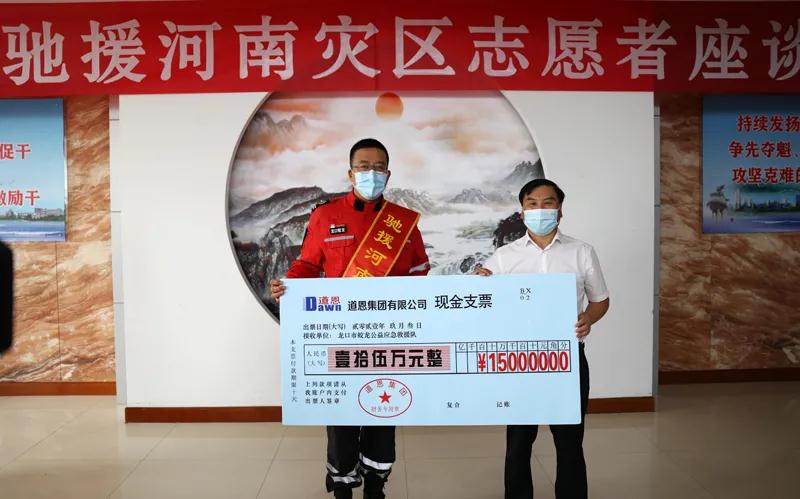 “我聽說,去年道恩就為蛟龍公益應(yīng)急救援隊(duì)捐贈了10萬元,今年又為兩支志愿者隊(duì)伍捐贈20萬元,道恩帶了個(gè)好頭!”呂波書記對此表示贊許。“你們馳援河南,道恩獻(xiàn)上愛心!”于曉寧董事長說,隊(duì)員們把志愿精神融入血脈、鑄入靈魂,是龍口志愿服務(wù)隊(duì)伍中的杰出代表和典型縮影。我為大家的付出與奉獻(xiàn)“點(diǎn)贊”