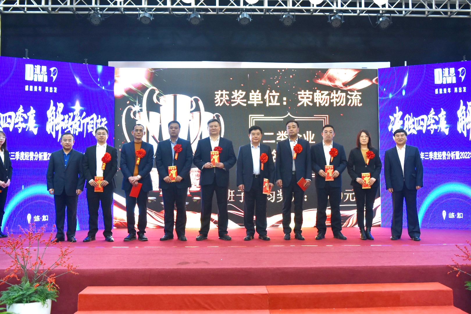 會(huì)議對(duì)三季度超額完成經(jīng)營(yíng)目標(biāo),以及取得季度效益創(chuàng)優(yōu)和季度雙增長(zhǎng)獎(jiǎng)的經(jīng)營(yíng)單位進(jìn)行表彰獎(jiǎng)勵(lì)。集團(tuán)公司領(lǐng)導(dǎo)班子成員分別為獲獎(jiǎng)單位頒獎(jiǎng),獲獎(jiǎng)單位依次上臺(tái)表態(tài),展示了充滿激情的團(tuán)隊(duì)士氣,對(duì)沖刺全年目標(biāo)信心滿滿,把“靠上、拼上、豁上”,“要急、要爭(zhēng)、要搶”的精氣神兒帶到工作中去,以時(shí)不我待的熱情、拼搏進(jìn)取的激情、敢為人先的豪情,直面挑戰(zhàn),銳意進(jìn)取,鉚足干勁,再立新功。