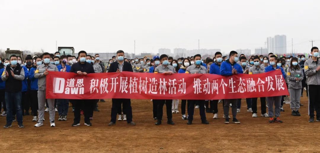 植樹造林,國之大計(jì)。于曉寧董事長(zhǎng)表示,道恩集團(tuán)要堅(jiān)持綠色發(fā)展之路,在科技創(chuàng)新領(lǐng)域推動(dòng)綠色低碳化發(fā)展,積極響應(yīng)國家“雙碳”目標(biāo),研發(fā)以新能源、可降解、生物基為代表的市場(chǎng)前沿新材料。以兩個(gè)國家級(jí)綠色工廠為基礎(chǔ),不斷打造產(chǎn)品鏈、企業(yè)鏈、產(chǎn)業(yè)鏈;以龍口市新材料科技產(chǎn)業(yè)園為依托,堅(jiān)持園區(qū)“一精三好”的經(jīng)營方針,做好“美化、綠化、亮化、凈化”工程,共筑生態(tài)文明之基,打造自然生態(tài)和產(chǎn)業(yè)生態(tài),積極推動(dòng)“兩個(gè)生態(tài)”融合發(fā)展。
