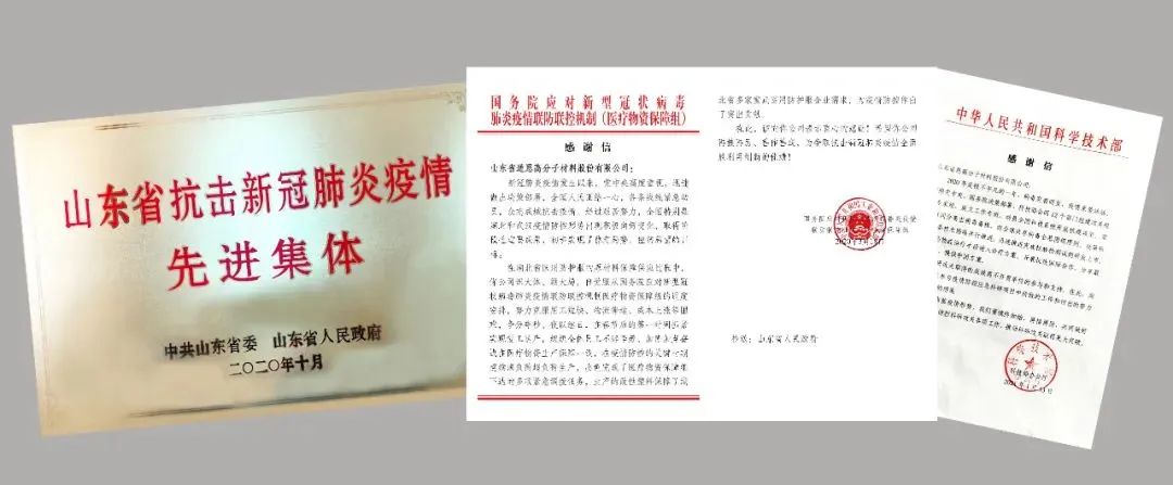 疫情期間,于曉寧董事長帶領(lǐng)道恩人第一時間投身防疫物資的生產(chǎn)保供和研發(fā)技術(shù)攻關(guān),最大限度保障口罩布聚丙烯熔噴專用料供應(yīng)。同時,與北京化工大學(xué)聯(lián)合承擔(dān)了國家科技部和北京市科委兩項(xiàng)應(yīng)急研究課題,參與起草《可重復(fù)使用民用口罩團(tuán)體標(biāo)準(zhǔn)》,極大緩解了疫情之下國家急需可反復(fù)使用口罩的迫切需求。道恩硬核的抗疫表現(xiàn),獲得了國務(wù)院、國家科技部及多個省份的感謝與表彰。