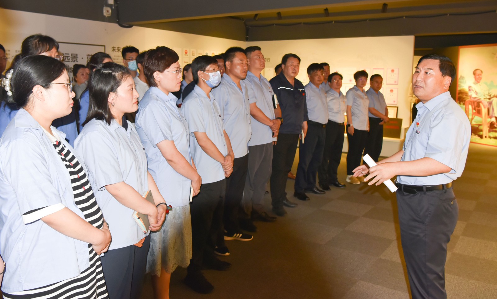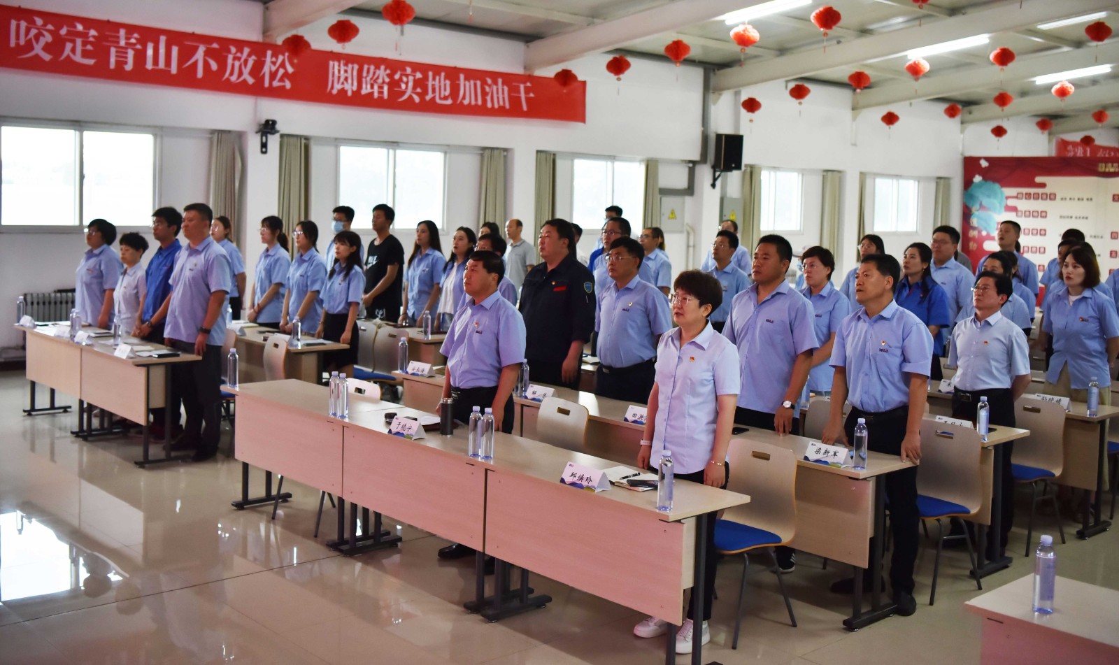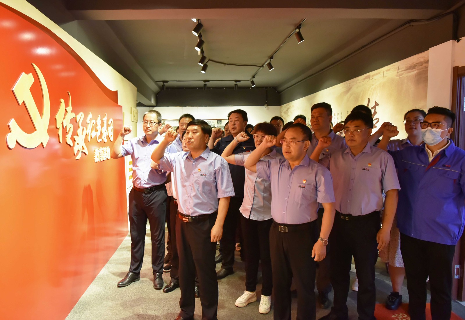 在黨委書記于曉寧的帶領(lǐng)下,與會人員參觀了傳承紅色基因教育基地,實地感受黨在發(fā)展歷程中沉淀下來的紅船精神、延安精神、工匠精神。“我志愿加入中國共產(chǎn)黨……”于曉寧書記與黨員干部高舉右拳,莊嚴(yán)宣誓,錚錚誓言,響徹全場。