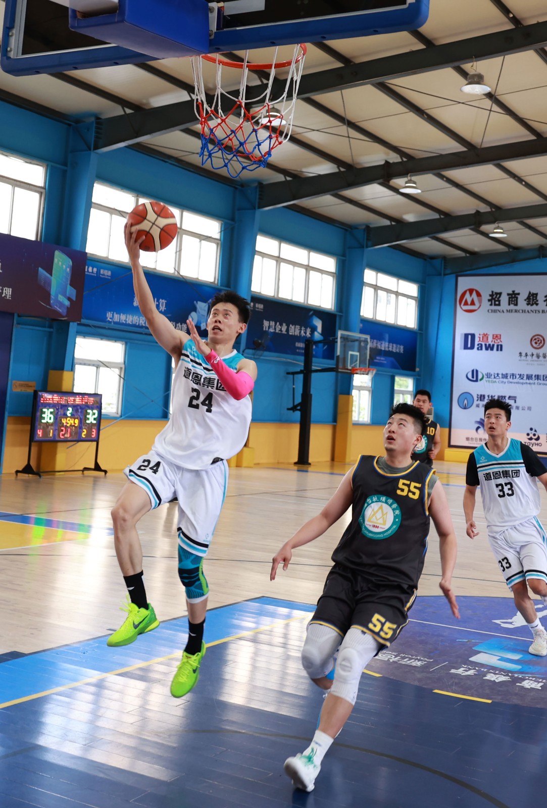 9月4日,集團公司籃球隊背靠背迎戰(zhàn)毓璜頂籃球隊。經(jīng)過半決賽中3個多小時的激烈角逐,隊員們體力消耗巨大。賽前,宋慧東副總裁為大家加油打氣,進行了專業(yè)的戰(zhàn)術指導。比賽中,隊員們進攻激烈有序,防守張弛有度。經(jīng)過激烈的角逐,以98:88的優(yōu)勢勇奪桂冠。默契的配合、漂亮的傳球、精準的投籃,贏得了現(xiàn)場觀眾的陣陣掌聲和歡呼聲,充分展現(xiàn)了道恩人“團結拼搏,追求卓越”的精神。