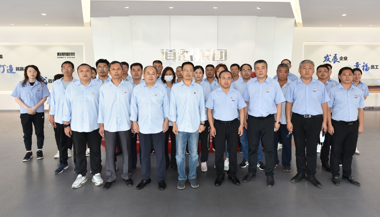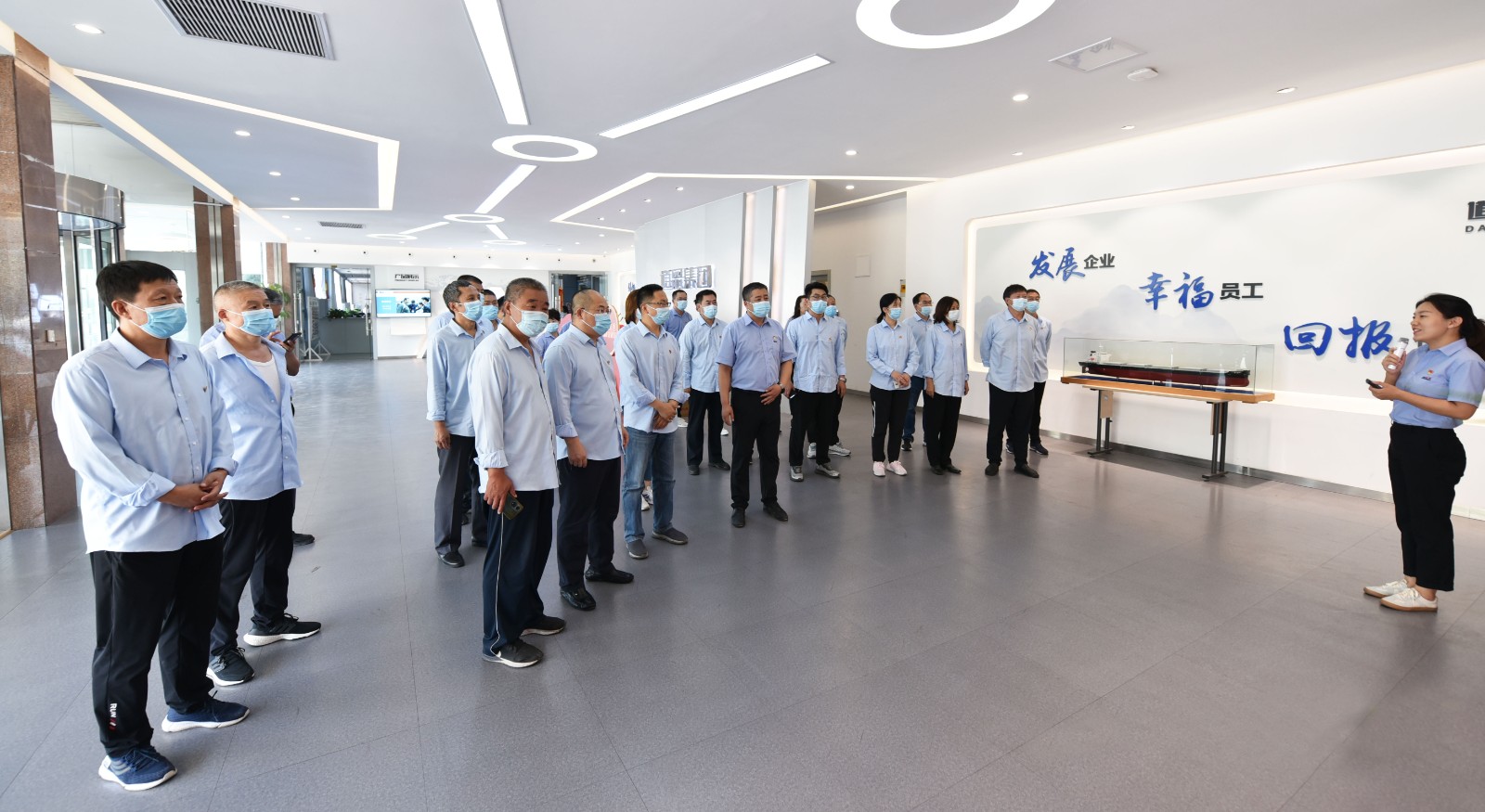 在道恩集團(tuán)總部,華電龍口黨員干部們共同參觀了總部大廳,聽取了道恩的企業(yè)介紹、發(fā)展概況、企業(yè)文化建設(shè)等情況。道恩集團(tuán)黨總支書記、常務(wù)副總裁肖輝,行政管理部部長楊景毅參加活動(dòng)。