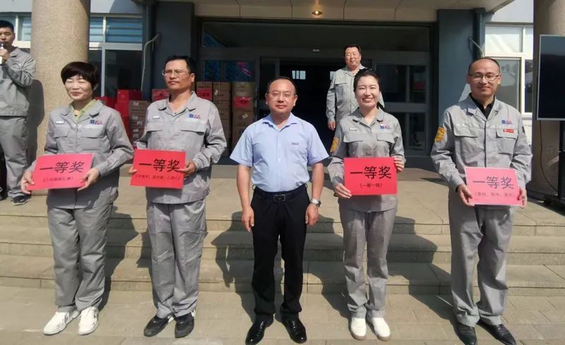 經(jīng)過激烈的角逐,由污控車間組成的“夢之隊”,獲得“要急、要爭、要搶”比賽第一名;由表面處理車間組成的“飛虎隊”,獲得“一圈一鏈”比賽第一名;由生產(chǎn)、倉儲、電儀車間組成的“同心生產(chǎn)隊”,獲得“手挽手、肩并肩、心連心”比賽第一名;由水解車間組成的“磐石隊”,獲得“三共趣味比賽”比賽第一名。肖輝常務副總裁為獲得一等獎的代表隊頒獎并合影留念。