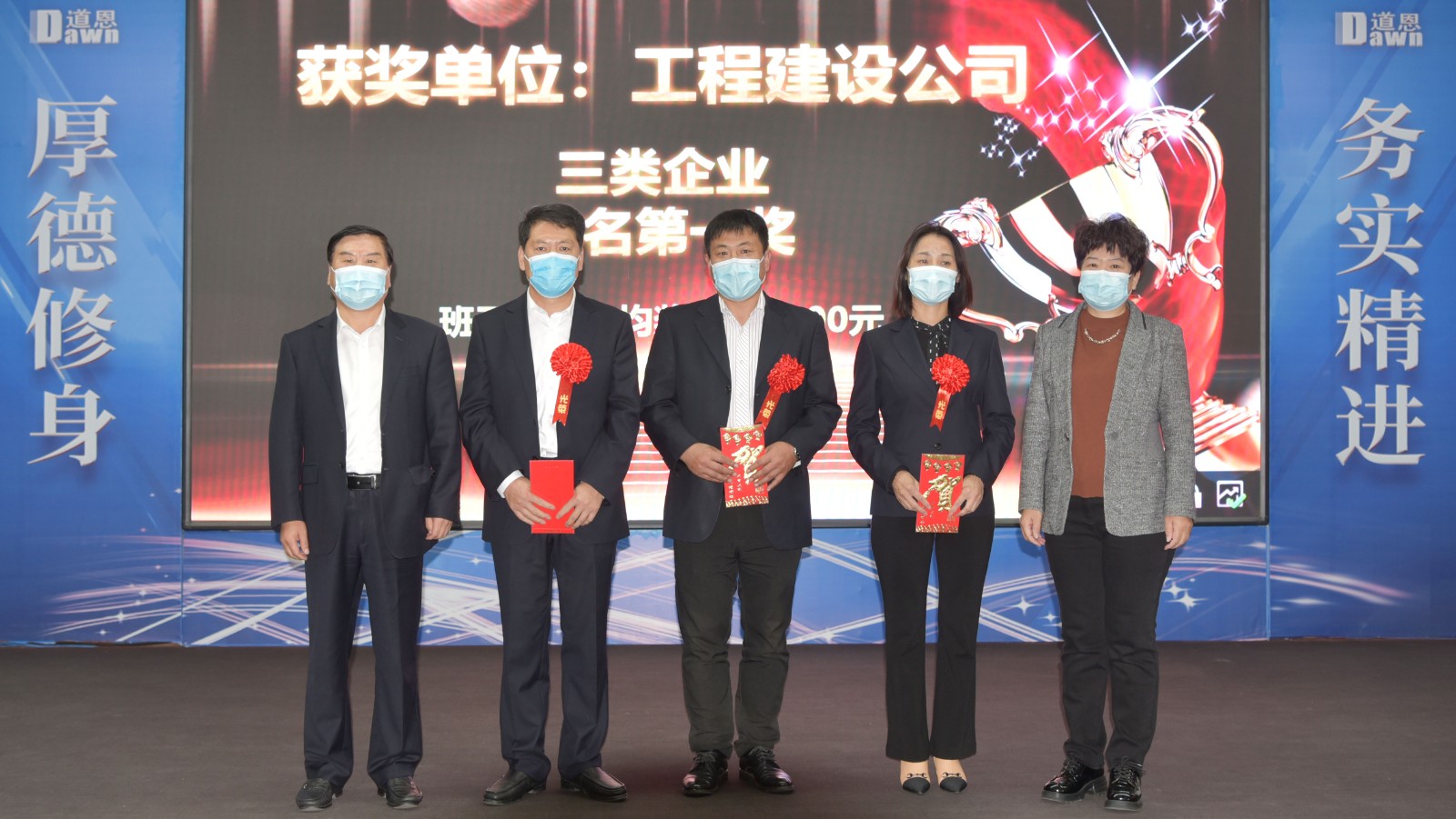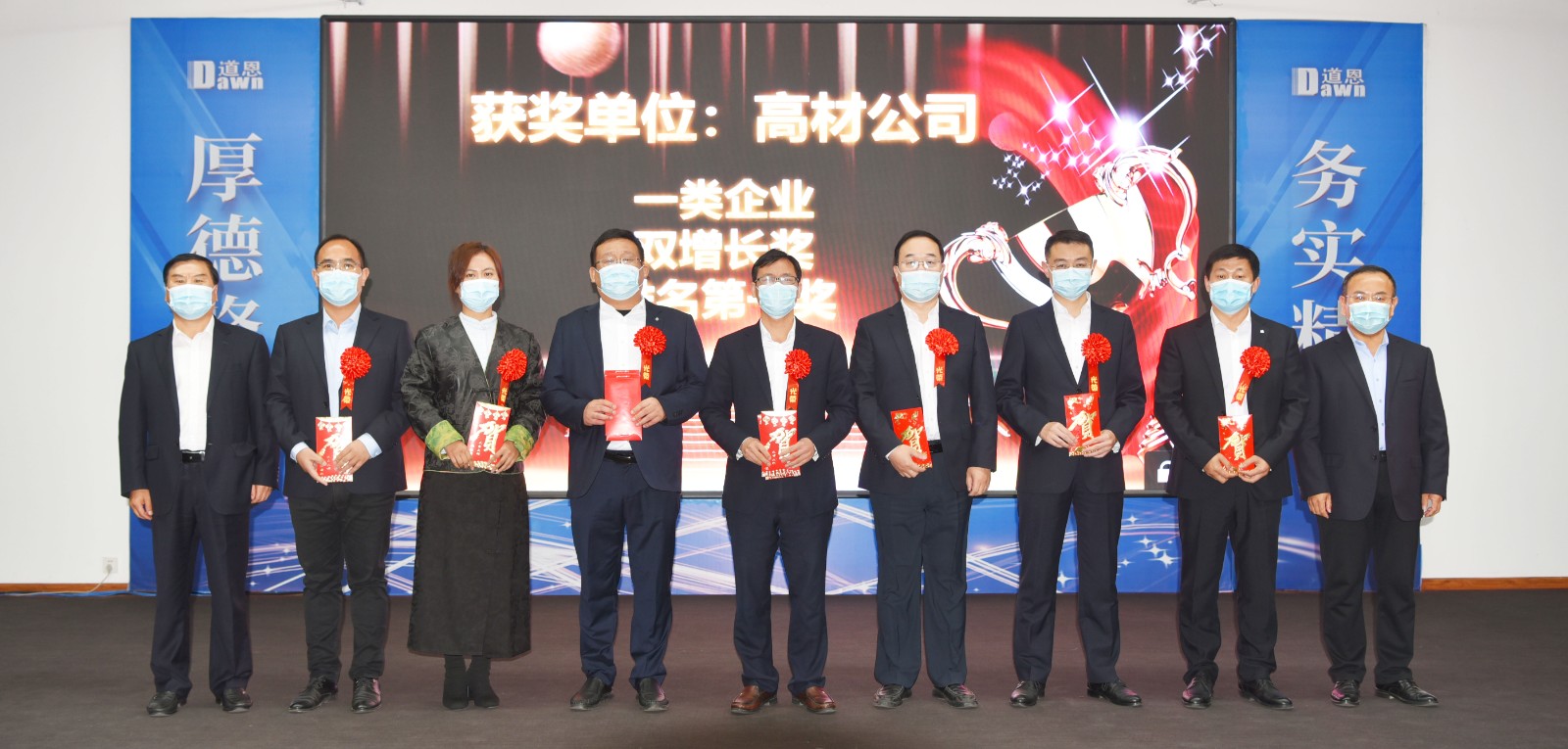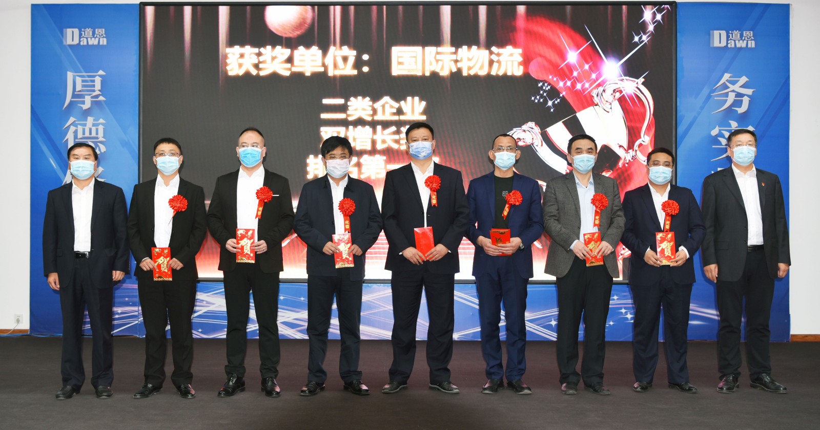 會議對三季度綜合排名第一以及取得效益創(chuàng)優(yōu)和雙增長獎的經營單位進行表彰獎勵,道恩集團領導班子成員分別為獲獎單位進行頒獎。
