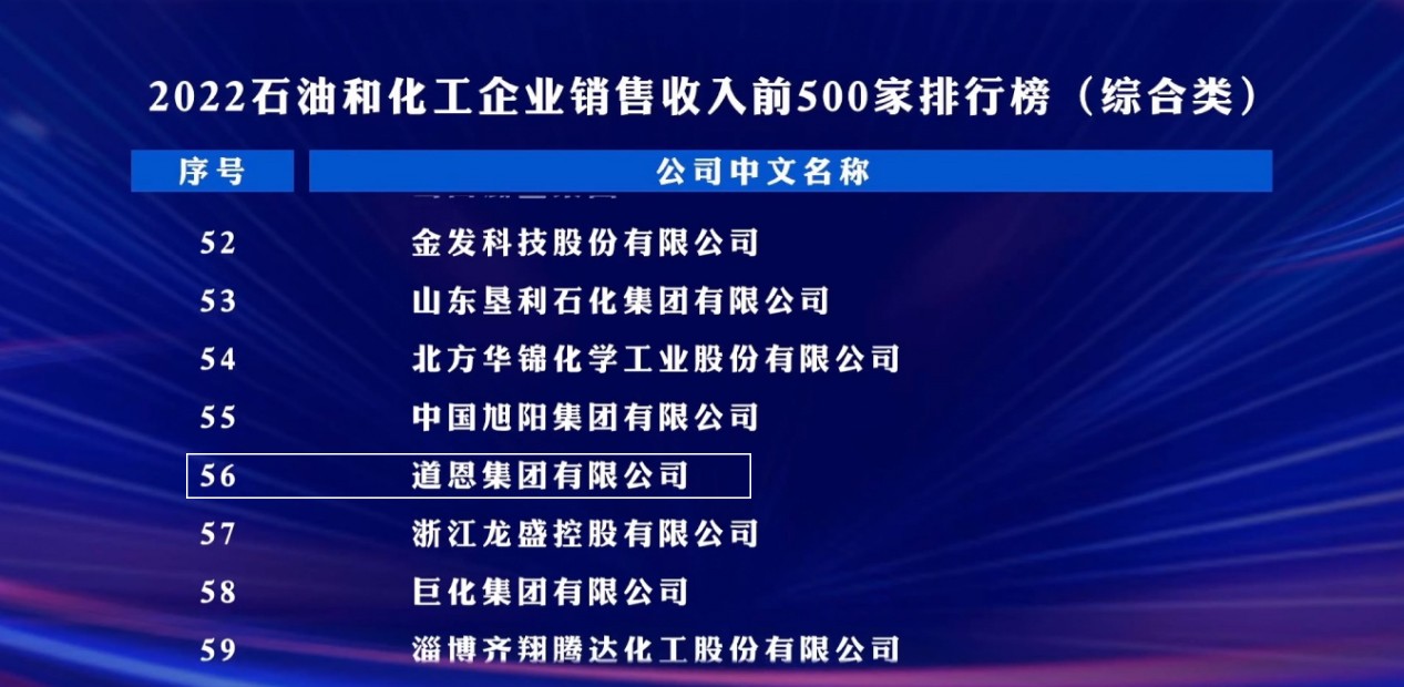 連年攀升!道恩位列全國(guó)石化企業(yè)500強(qiáng)第56名