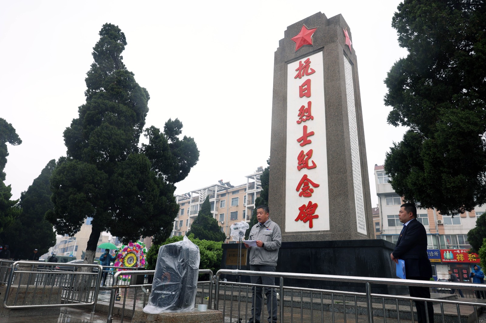 煙雨蒙蒙,寒煙無(wú)聲。伴隨著慷慨激昂的《義勇軍進(jìn)行曲》,在莊嚴(yán)肅穆的抗日烈士紀(jì)念碑前,大家懷著無(wú)比崇敬的心情向革命烈士鞠躬默哀,隨后依次有序走向紀(jì)念碑,為在此長(zhǎng)眠的先烈敬獻(xiàn)花圈,并瞻仰革命烈士紀(jì)念碑,向烈士表示深切緬懷和崇高敬意。