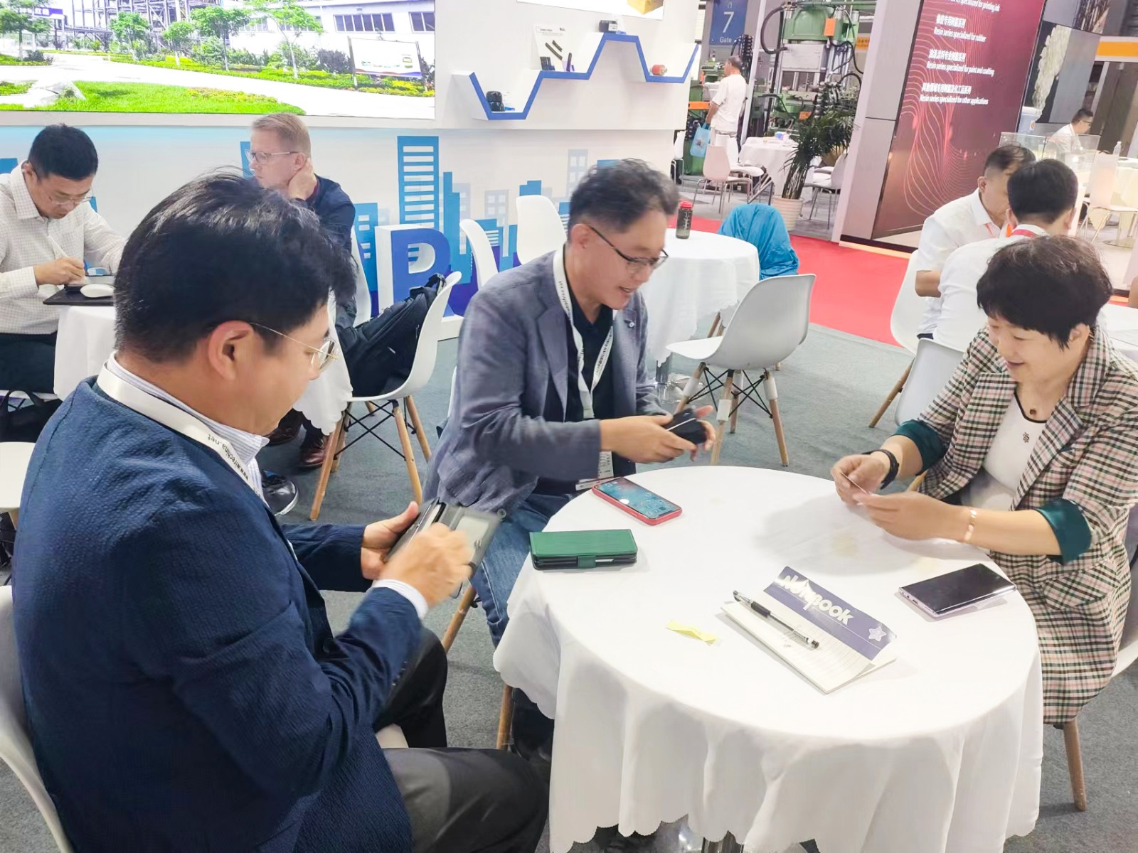 展會(huì)首日,岱高公司、哈金森、諾德曼等重點(diǎn)客戶慕名來到道恩展位洽談交流,道恩集團(tuán)副總裁邱煥玲及道恩股份、道恩特彈公司有關(guān)領(lǐng)導(dǎo)與客戶進(jìn)行溝通互動(dòng),共同探討后續(xù)合作情況。期間,韓國某客戶與道恩特彈公司達(dá)成戰(zhàn)略合作意向,在現(xiàn)有合作的基礎(chǔ)上,將于2024年開始用量翻倍。