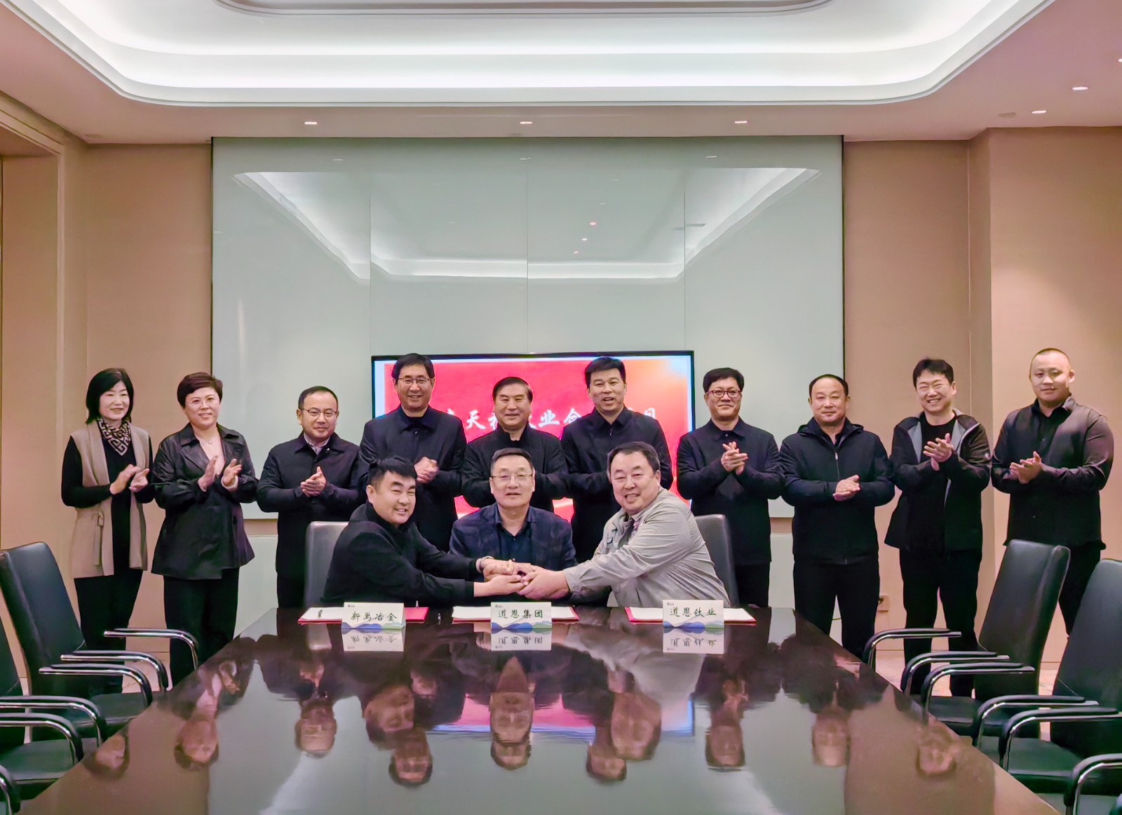 河北省承德縣政府縣長(zhǎng)柳雪松,副縣長(zhǎng)張?jiān)?,政協(xié)副主席、應(yīng)急管理局局長(zhǎng)張立國(guó),高寺臺(tái)鎮(zhèn)黨委書(shū)記馬志江。道恩集團(tuán)董事長(zhǎng)、總裁于曉寧,常務(wù)副總裁肖輝,投融資管理部部長(zhǎng)王曉莉等有關(guān)領(lǐng)導(dǎo)共同見(jiàn)證簽約儀式。
